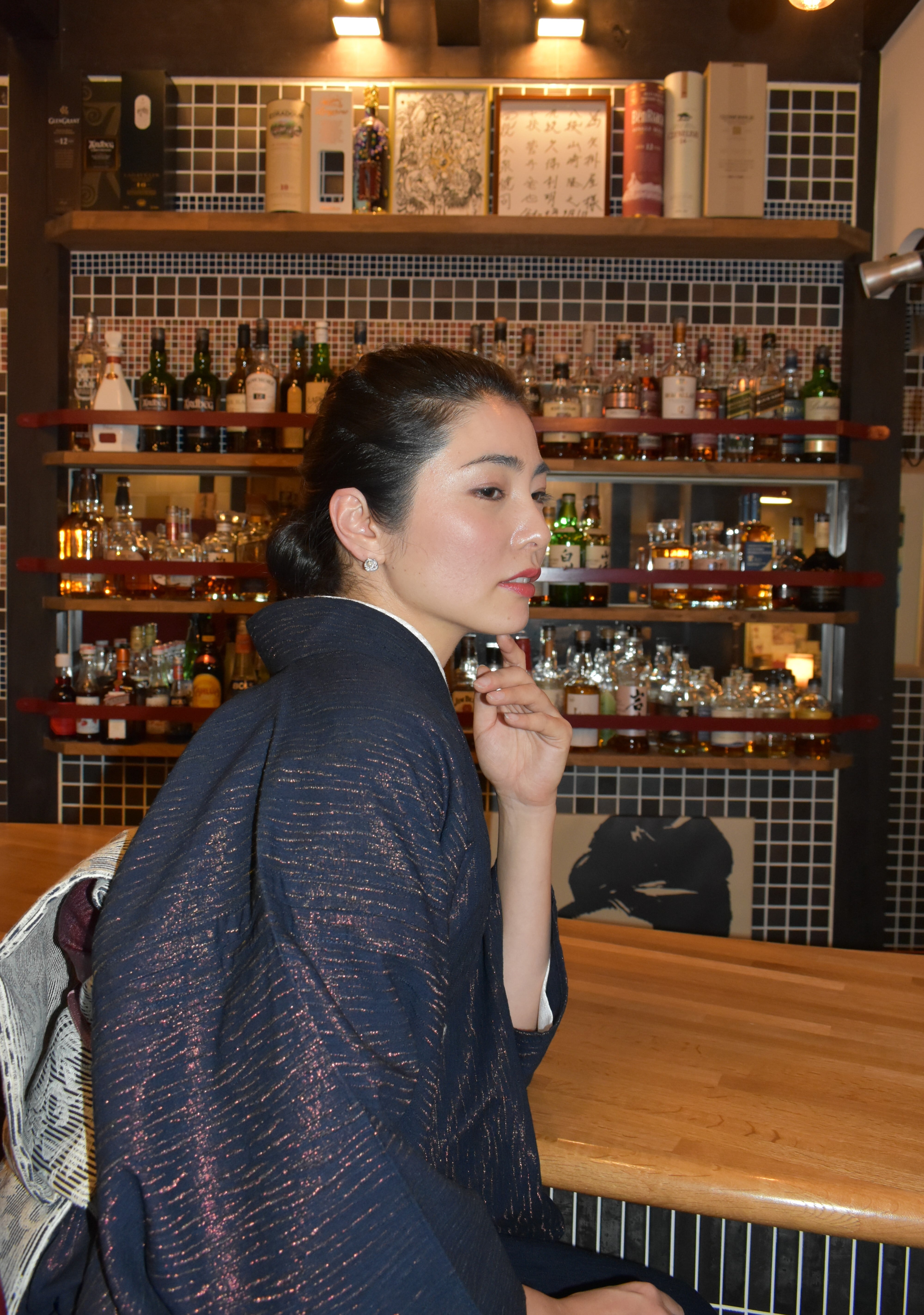 アメジストの様に深みのある輝きを放ち、光の角度により様々な表情を持つこちらの着物は