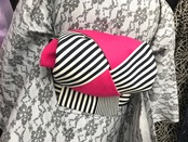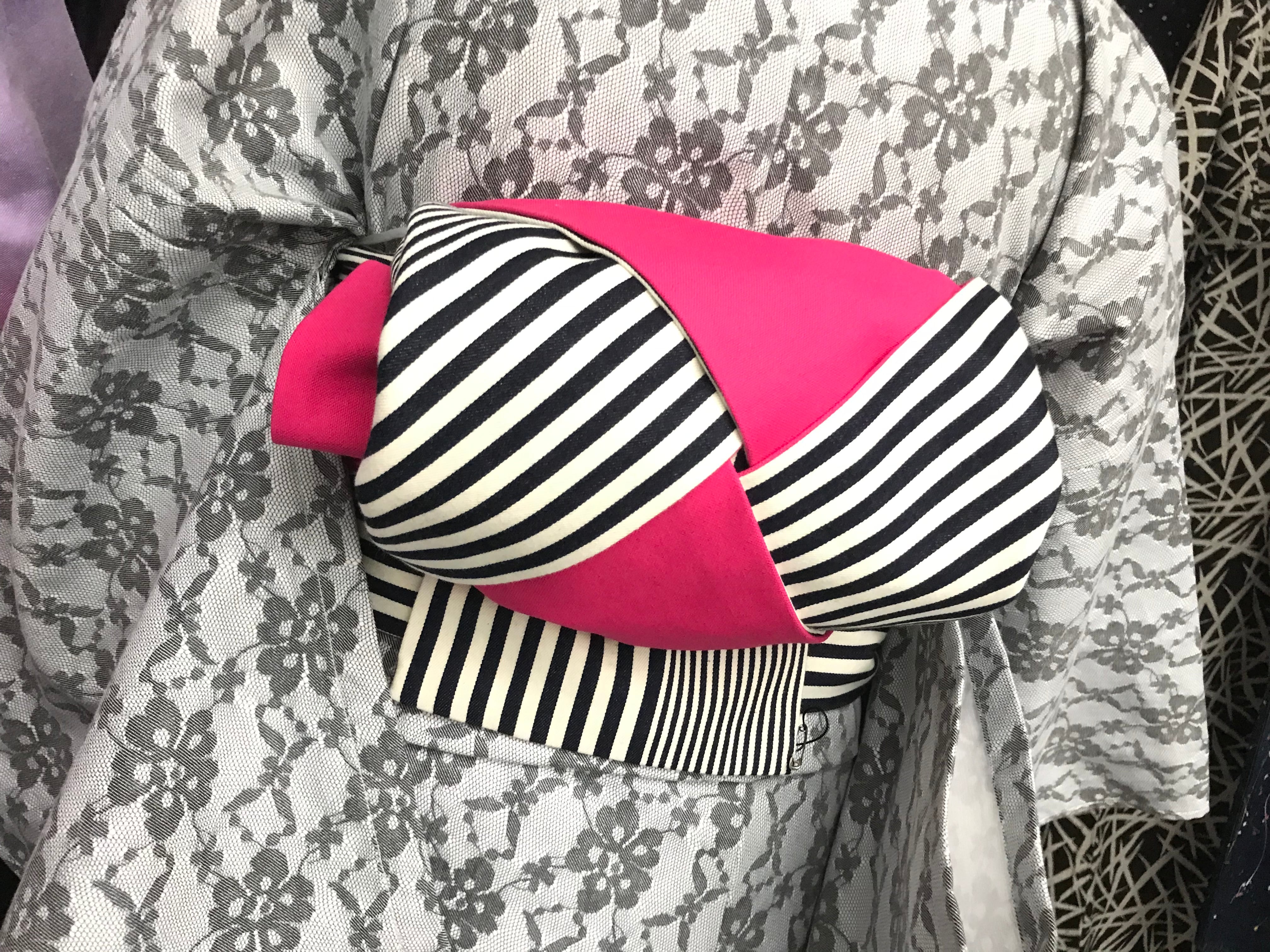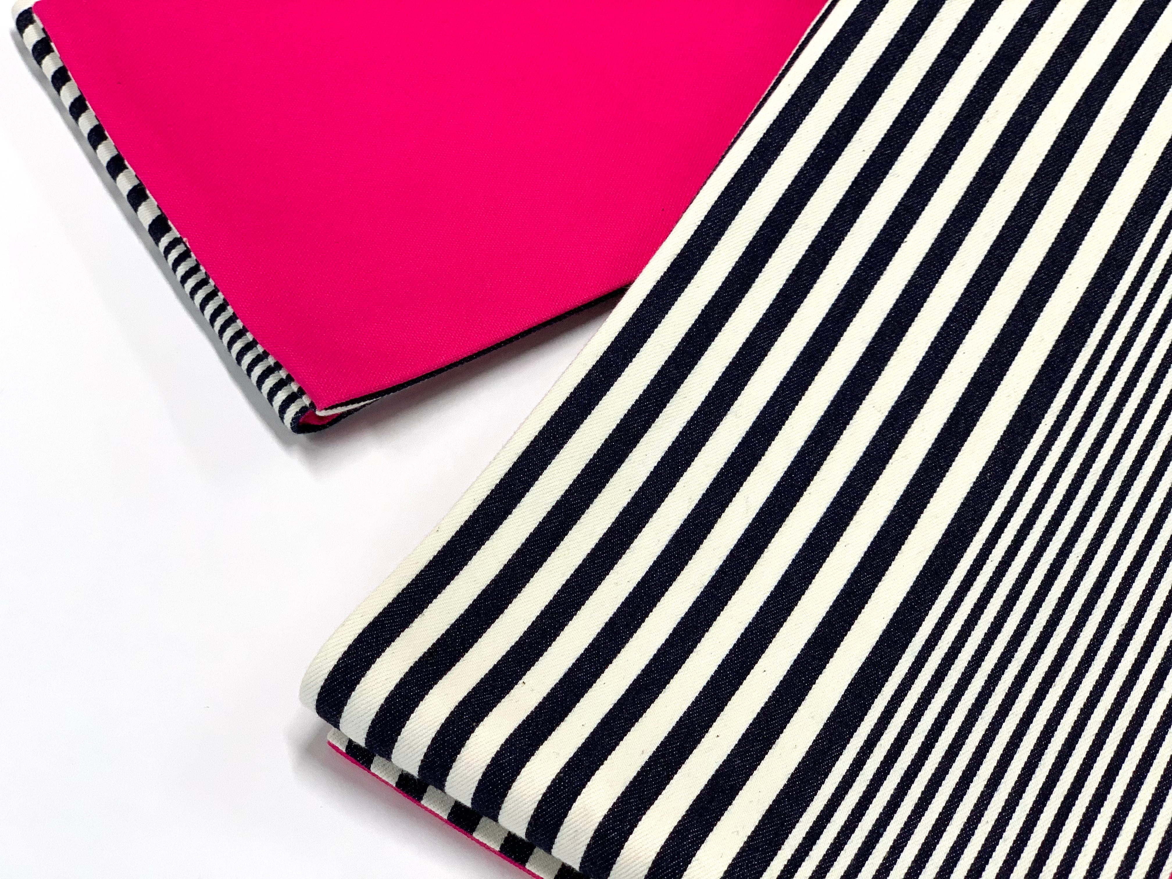 ランダムストライプとビビットなピンク(帆布)が相まってキュートな仕上がりになりました。